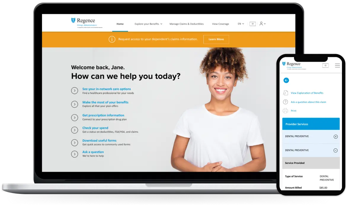 For the Member Portal, UpTop delivered a responsive, fully redesigned experience across three regional brands (HMA, Regence of WA, and Regence of OR). Key member actions—viewing claims, printing ID cards, downloading forms—were consolidated into a streamlined UI built for clarity and efficiency. Design prototypes were user-tested and iterated rapidly, ensuring usability for both members and admins.